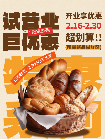 声明:文章"面包店促销活动海报设计"部分设计素材来源于网络,如有侵权请联系处理,感谢支持!