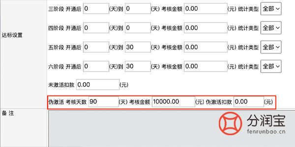 例:激活达标政策里面,伪激活考核天数90天,考核金额10000元。90内未刷满(只要机器开通了,90天后还没到1W),那就要被执行伪激活扣款。