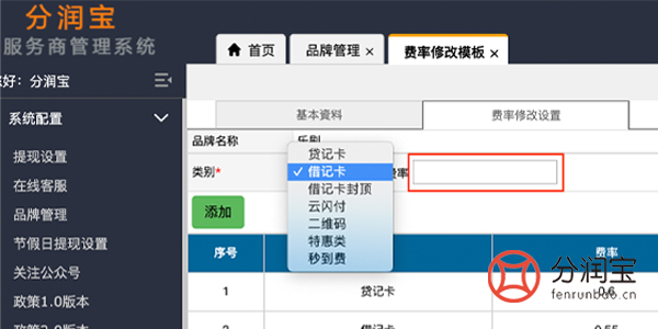 由于POS机商户不同,POS联盟系统可以根据不同的服务商,调整费率。那在POS联盟系统中应该如何修改商户费率呢?