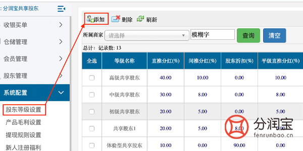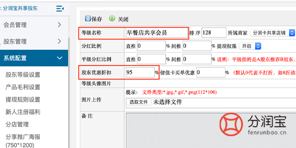 2、填写等级名称-->>填写股东优惠折扣-->>点击保存