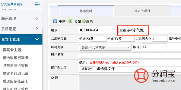 1、贵宾卡主题-->>点击添加-->>填写产品名称-->>点击更新