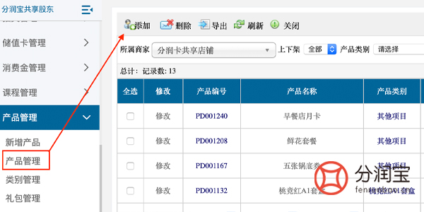 2、产品管理-->>点击添加