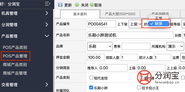 登录支付联盟系统-->>产品管理-->>选择产品-->>点击修改-->>状态选择缺货