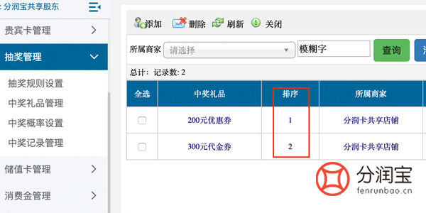 以此类推......想要第几位抽得什么奖品,就在对应的排序填写相应的奖品