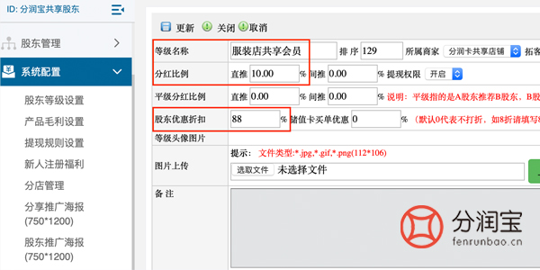 1、登录共享股东软件-->>股东等级设置-->>点击"添加"-->>填写"等级名称"-->>点击"更新"