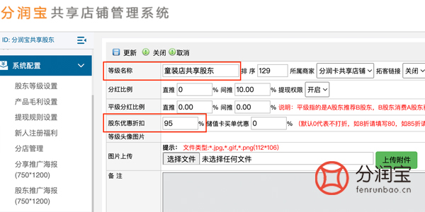 进入系统后台,系统配置--股东等级设置--添加--填写“等级名称”