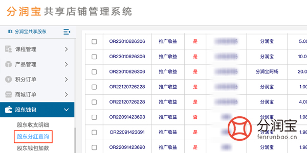 其中共享股东会员的所有个人信息,订单信息,分红数据等,都能通过共享店铺系统后台查询明细。