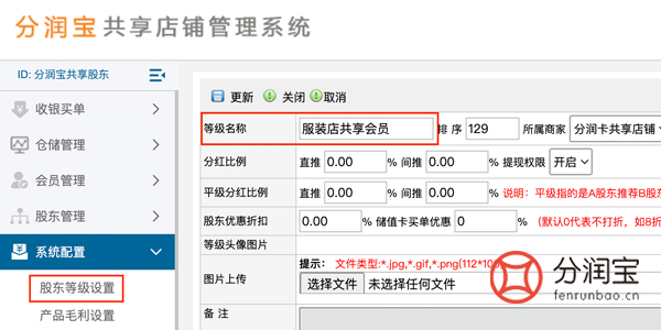 在共享店铺系统后台,设置共享股东等级,在系统配置,股东等级设置中,添加,填写“等级名称”,更新。