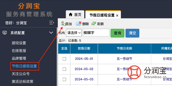 若像五一、国庆、春节这样的法定节假日公司财务放假,无法为代理商们提供提现服务,那支付联盟分润系统中的提现日期设置就起到了关键的作用。