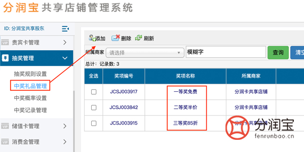 当然大转盘的奖品也要逐个添加上,最多6个,可根据门店活动的实际情况,像优惠券、代金券、免费洗护、感谢参与等,等可以添加设置。