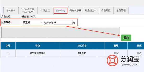 更新之后,在原页面上找到“股东价格”,选择“股东等级”,填写“价格”,添加。