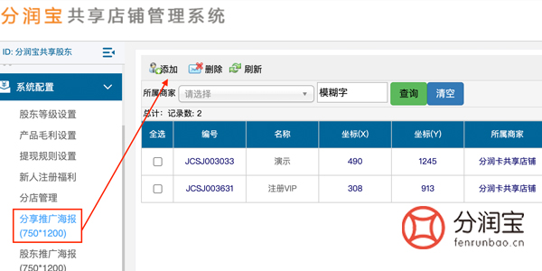 其中的扫码成为会员活动和线上抽奖活动,都可以通过共享店铺系统后台设置。在共享店铺系统后台,找到系统配置,分享推广海报,添加,把宣传推广图设计好,直接上传附件,保存。