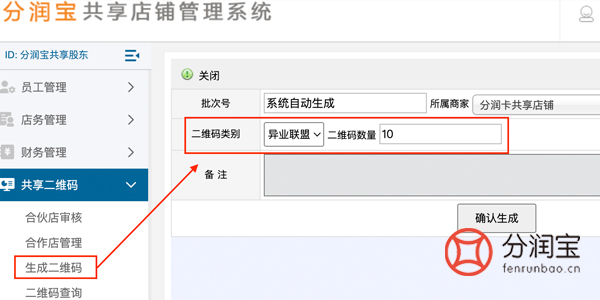 母婴店可以在共享店铺系统后台,生成异业联盟二维码,找到共享二维码,点击生成二维码,选择“所属商家”,选择“二维码类别”,填写“二维码数量”。张贴在合作门店中,工顾客扫码购买、了解商品等。