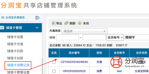 顾客用储值卡可以在共享店铺手机端,直接购买商品/项目。关于储值卡的消费记录具体情况,在共享店铺系统后台也能直接查询到。