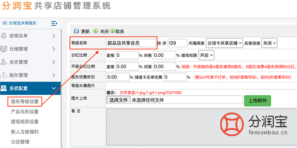 成为甜品店共享会员的方式很简单,在共享店铺系统中,设置甜品店共享会员的股东等级。