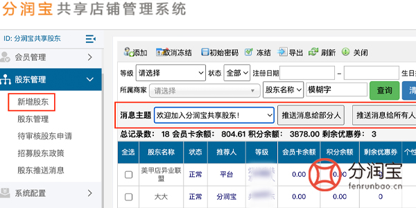 活动按照以上方式顺利进行着,若后期有活动,还能够通过共享店铺系统后台,按等级的不同,推送给这些共享股东,不同的活动消息。