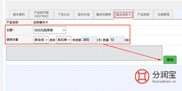 这已经是一个相当诱人的优惠,但赵总还进一步增加了福利,每张年卡还附带了10张价值500元的电子抵用券。这些电子抵用券可以转赠给亲朋好友,增加了年卡的分享价值。设置如图所示