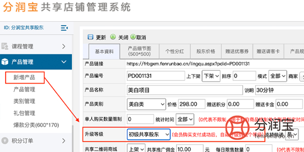 其中共享店铺系统后台可添加很多不同的股东等级,根据等级名称的不同,分红比例也不一样。