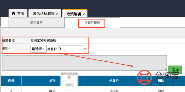 然后设置结算价模版,可将刷卡、扫码所能遇到的结算价的规则都添加上。