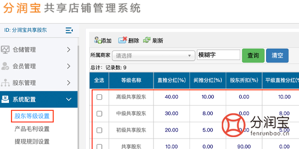 基于个体的贡献和资源价值,可以通过共享会员模式,利润分配则根据每次旅行服务后个体的贡献和股权比例来进行。在系统配置--股东等级设置,添加“等级名称”、“分红比例”、“平级分红比例”、“股东优惠折扣”,更新。