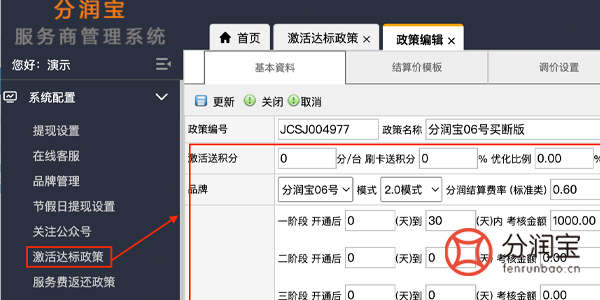 操作流程:商家需要在支付联盟系统进行激励政策的设置。可根据品牌设置不同的POS机激活达标政策,还能激活送积分,刷卡送积分等。按每个阶段的考核标准进行返现,考核达标及返现。