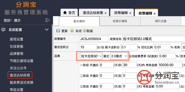 2.0模式:借助了直销的思路,现在很多企业都是借助直销的模式来经营,也是靠着一套利益分配制度来管理,分润也是总部直发的,所以没有不存在被切割分润的风险。选择2.0模式的代理商应该选择正规的支付公司官方产品,但是这种模式下最大的优势是能吸引更多的用户加入进来,也不需要太高的门槛,实现了很多人当老板的梦想。pos机分销系统设置2.0模式如图