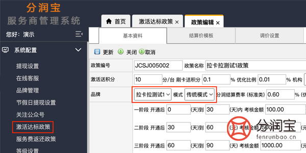 传统模式:1.0模式代理商有一级和二级的区别,一级代理和总部对接直签的,分润也是总部直发的。而二级代理商属于一级代理下面的小代理,分润也是由一级代理发放的,相对传统模式的POS机费率一般是比较标准的,传统模式一般情况下,只要你能首提500台,基本上就能拿到一级的政策了,甚至还会获得机构额外的补贴。pos机分销系统设置1.0模式如图