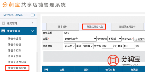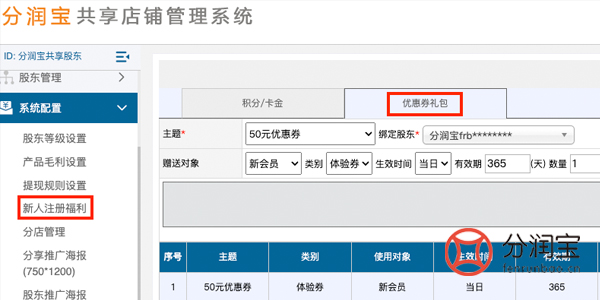 新关注用户专享券:当消费者首次注册共享店铺系统时,系统即可自动赠送一张专享代金券,用于下次消费使用。