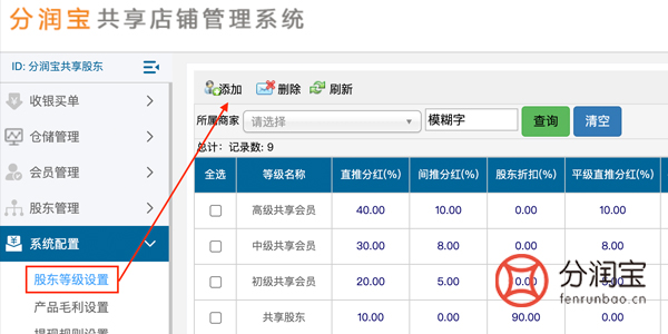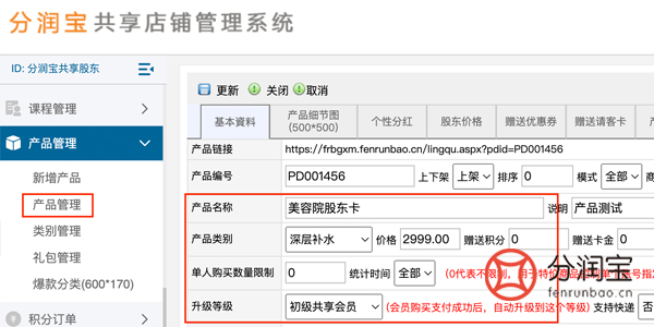 在共享店铺系统内设置共享股东,也就是客户得先成为美容院共享股东。股东等级可以是多个,等级不同,分红比例不同。