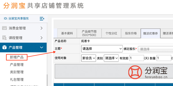 选择发放方式:商家可在后台先手动赠送给对应共享股东,或者是顾客通过购买商品和充值获得拓客卡优惠券。