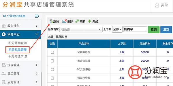 商品上架:商家可设置积分兑换商品及规则。