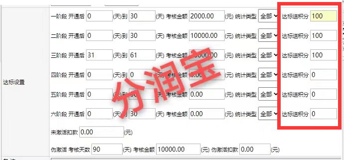 从原本的一阶段激活赠送积分,升级到现在的支持1-6阶段,每个阶段达标可以独立设置赠送的积分分值。
