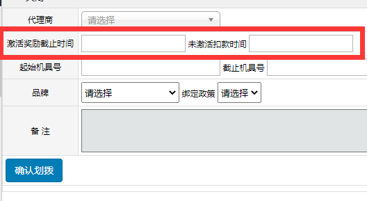 第二步、在划拨机具给代理商的时候,设置好对应批次机具的未激活扣款和激活达标奖励截止日期。