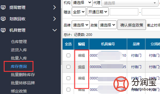 3、通过输入机具号或者商户号查询,找到对应的机具,如下图所示