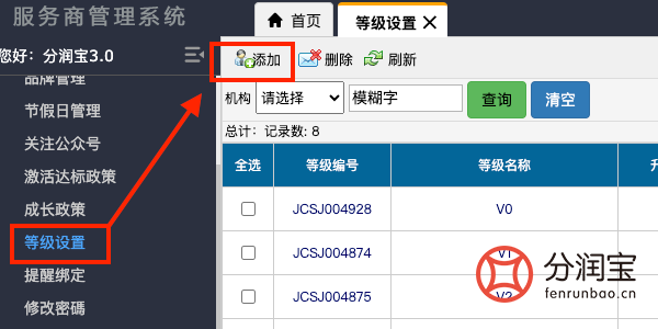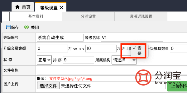 在代理商管理里面设置代理商的原始等级和扶持的等级,若扶持到期日期到期,未达标扶持等级将回到原始等级。