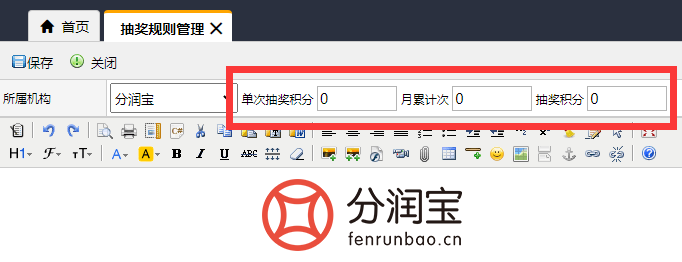 3、进入抽奖规则管理,如下图所示,设置单次抽奖积分,月累计次,抽奖积分