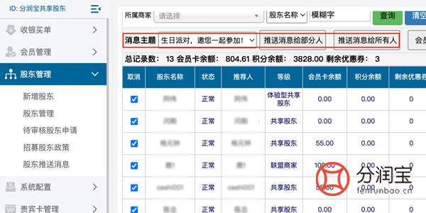首先给出承诺免费给会员办生日会,凡是服装店共享会员,通过共享股东后台消息推送,生日月月末均可参加。